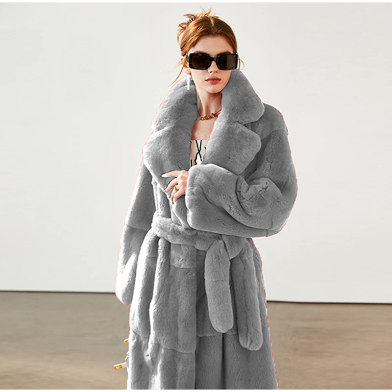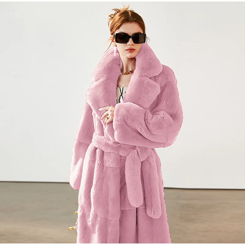 Model Number: Faux Rabbit Fur Coat Women belt